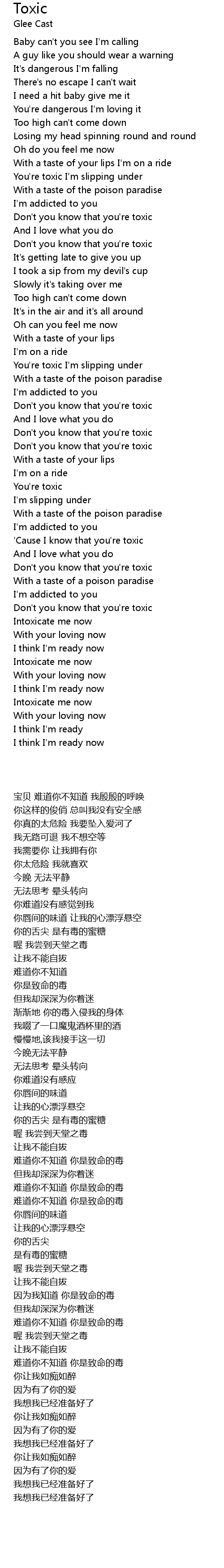 Your Toxic Lyrics